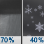 Temperature: 39°F Wind Speed: 6 to 9 mph Wind Direction: S Forecast: A chance of rain showers. Mostly cloudy, with a low around 39. Chance of precipitation is 40%. |