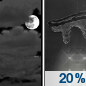 Temperature: 20°F Wind Speed: 6 to 9 mph Wind Direction: W Forecast: A slight chance of snow showers before 1am. Mostly cloudy, with a low around 20. |