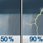 Temperature: 34°F Wind Speed: 5 mph Wind Direction: NW Forecast: A chance of showers and thunderstorms before midnight. Partly cloudy, with a low around 34. Northwest wind around 5 mph. Chance of precipitation is 30%. |