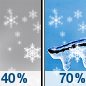 Temperature: 19°F Wind Speed: 8 mph Wind Direction: NE Forecast: A chance of snow before midnight. Cloudy, with a low around 19. Northeast wind around 8 mph. Chance of precipitation is 40%. New snow accumulation of less than half an inch possible. |