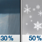 Temperature: 31°F Wind Speed: 0 to 5 mph Wind Direction: W Forecast: A chance of rain and snow showers. Mostly cloudy, with a low around 31. New snow accumulation of less than half an inch possible. |