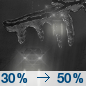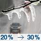 Temperature: 30°F Wind Speed: 5 to 10 mph Wind Direction: ESE Forecast: A chance of freezing rain before 7pm, then a chance of rain between 7pm and 9pm, then a chance of freezing rain and a chance of rain. Cloudy, with a low around 30. East southeast wind 5 to 10 mph. Chance of precipitation is 50%. Little or no ice accumulation expected. |