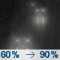 Temperature: 42°F Wind Speed: 3 mph Wind Direction: S Forecast: Rain likely after 10pm. Mostly cloudy, with a low around 42. South wind around 3 mph. Chance of precipitation is 60%. New rainfall amounts less than a tenth of an inch possible. |