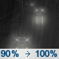Temperature: 42°F Wind Speed: 10 mph Wind Direction: SW Forecast: Rain. Cloudy, with a low around 42. |