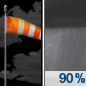 Temperature: 40°F Wind Speed: 21 to 35 mph Wind Direction: WSW Forecast: Rain showers after 5am. Partly cloudy. Low around 40, with temperatures rising to around 48 overnight. West southwest wind 21 to 35 mph, with gusts as high as 48 mph. Chance of precipitation is 90%. |