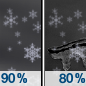 Temperature: 13°F Wind Speed: 10 to 14 mph Wind Direction: SE Forecast: Snow before 1am, then snow likely and a slight chance of sleet between 1am and 3am, then a chance of freezing rain between 3am and 5am, then a chance of freezing rain and a slight chance of sleet. Cloudy. Low around 13, with temperatures rising to around 20 overnight. Southeast wind 10 to 14 mph. Chance of precipitation is 90%. New snow accumulation of 1 to 2 inches possible. Little or no ice accumulation expected. |