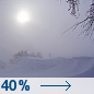 Temperature: -4°F Wind Speed: 6 to 21 mph Wind Direction: SE Forecast: A chance of snow between midnight and 4am, then a chance of snow and patchy blowing snow. Mostly cloudy, with a low around -4. Southeast wind 6 to 21 mph, with gusts as high as 32 mph. Chance of precipitation is 40%. New snow accumulation of less than half an inch possible. |