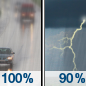 Temperature: 59°F Wind Speed: 21 to 26 mph Wind Direction: SSW Forecast: Rain before 1pm, then showers and thunderstorms between 1pm and 4pm, then rain likely. Cloudy, with a high near 59. South southwest wind 21 to 26 mph, with gusts as high as 44 mph. Chance of precipitation is 100%. New rainfall amounts between a quarter and half of an inch possible. |