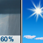 Temperature: 60°F Wind Speed: 3 to 7 mph Wind Direction: SW Forecast: Partly sunny, with a high near 60. |