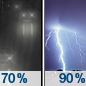Temperature: 37°F Wind Speed: 2 mph Wind Direction: SSW Forecast: Rain likely before 4am, then showers and thunderstorms. Mostly cloudy, with a low around 37. Chance of precipitation is 90%. New rainfall amounts between a quarter and half of an inch possible. |