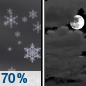 Temperature: 25°F Wind Speed: 5 to 10 mph Wind Direction: S Forecast: A chance of snow after 7pm. Cloudy, with a low around 25. Chance of precipitation is 50%. New snow accumulation of less than half an inch possible. |