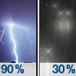 Temperature: 66°F Wind Speed: 2 to 7 mph Wind Direction: E Forecast: Rain likely before 1pm, then rain and a slight chance of thunderstorms. Cloudy, with a high near 66. East wind 2 to 7 mph. Chance of precipitation is 90%. New rainfall amounts between a half and three quarters of an inch possible. |
