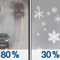 Temperature: 34°F Wind Speed: 10 to 20 mph Wind Direction: S Forecast: A chance of rain after midnight. Mostly cloudy, with a low around 34. Chance of precipitation is 40%. |