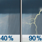 Temperature: 60°F Wind Speed: 15 to 20 mph Wind Direction: S Forecast: Rain showers before 3pm, then showers and thunderstorms. Mostly cloudy, with a high near 60. South wind 15 to 20 mph, with gusts as high as 30 mph. Chance of precipitation is 90%. |