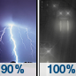 Temperature: 53°F Wind Speed: 18 to 31 mph Wind Direction: SSE Forecast: Showers and thunderstorms before 10pm, then rain. Mostly cloudy. Low around 53, with temperatures rising to around 55 overnight. South southeast wind 18 to 31 mph, with gusts as high as 51 mph. Chance of precipitation is 100%. New rainfall amounts between a half and three quarters of an inch possible. |