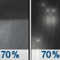 Temperature: 71°F Wind Speed: 5 to 10 mph Wind Direction: SSW Forecast: A slight chance of rain showers. Partly sunny, with a high near 71. Chance of precipitation is 20%. |