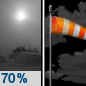 Temperature: 34°F Wind Speed: 15 to 21 mph Wind Direction: WSW Forecast: Partly cloudy, with a low around 34. West southwest wind 15 to 21 mph, with gusts as high as 35 mph. |