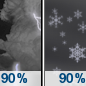 Temperature: 32°F Wind Speed: 10 to 15 mph Wind Direction: SW Forecast: Rain showers before 7pm, then showers and thunderstorms between 7pm and 5am, then a slight chance of rain and snow showers. Mostly cloudy, with a low around 32. Southwest wind 10 to 15 mph, with gusts as high as 25 mph. Chance of precipitation is 90%. |