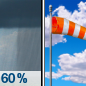 Temperature: 42°F Wind Speed: 15 to 21 mph Wind Direction: W Forecast: Rain showers likely before 7am. Mostly sunny, with a high near 42. Chance of precipitation is 60%. |