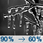 Temperature: 27°F Wind Speed: 5 mph Wind Direction: NNW Forecast: Freezing rain before 4am. Mostly cloudy, with a low around 27. Chance of precipitation is 90%. New snow accumulation of less than half an inch possible. New ice accumulation of less than one inch possible. |
