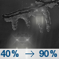 Temperature: 18°F Wind Speed: 10 mph Wind Direction: W Forecast: A chance of rain before 10pm. Mostly cloudy, with a low around 18. Chance of precipitation is 40%. |