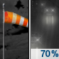 Temperature: 38°F Wind Speed: 10 to 21 mph Wind Direction: S Forecast: Rain likely after midnight. Mostly cloudy. Low around 38, with temperatures rising to around 52 overnight. South wind 10 to 21 mph, with gusts as high as 36 mph. Chance of precipitation is 70%. New rainfall amounts between a tenth and quarter of an inch possible. |