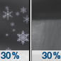 Temperature: 31°F Wind Speed: 10 mph Wind Direction: S Forecast: A slight chance of snow showers before 7pm, then a chance of rain showers. Cloudy, with a low around 31. Chance of precipitation is 30%. |