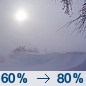 Temperature: 17°F Wind Speed: 14 to 24 mph Wind Direction: NW Forecast: A chance of snow showers and patchy blowing snow. Mostly cloudy, with a low around 17. Northwest wind 14 to 24 mph. Chance of precipitation is 50%. New snow accumulation of around one inch possible. |