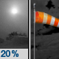 Temperature: 32°F Wind Speed: 8 to 21 mph Wind Direction: SW Forecast: A chance of rain showers after 1am. Mostly cloudy, with a low around 32. Chance of precipitation is 30%. |
