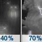 Temperature: 58°F Wind Speed: 9 to 14 mph Wind Direction: W Forecast: Rain likely and a slight chance of showers and thunderstorms before 7am. Mostly sunny, with a high near 58. Chance of precipitation is 70%. |