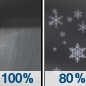 Temperature: 27°F Wind Speed: 13 to 22 mph Wind Direction: SW Forecast: Rain showers before 3am, then a chance of snow showers between 3am and 5am. Cloudy, with a low around 27. Southwest wind 13 to 22 mph, with gusts as high as 39 mph. Chance of precipitation is 100%. New rainfall amounts between three quarters and one inch possible. |