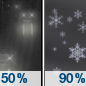 Temperature: 32°F Wind Speed: 14 to 23 mph Wind Direction: S Forecast: Rain between 8pm and 5am, then rain and snow likely. Cloudy. Low around 32, with temperatures rising to around 36 overnight. South wind 14 to 23 mph, with gusts as high as 39 mph. Chance of precipitation is 90%. New rainfall amounts between a tenth and quarter of an inch possible. |