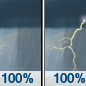 Temperature: 58°F Wind Speed: 10 to 14 mph Wind Direction: SSE Forecast: Rain showers before 4pm, then showers and thunderstorms. Cloudy, with a high near 58. Chance of precipitation is 100%. |