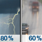 Temperature: 41°F Wind Speed: 2 to 6 mph Wind Direction: ESE Forecast: Rain. Mostly cloudy, with a low around 41. Chance of precipitation is 80%. |