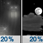 Temperature: 42°F Wind Speed: 5 mph Wind Direction: E Forecast: A slight chance of rain before 7pm. Partly cloudy, with a low around 42. |