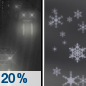 Temperature: 26°F Wind Speed: 10 to 20 mph Wind Direction: W Forecast: A slight chance of rain before midnight, then a chance of rain showers between midnight and 4am, then a chance of rain and snow showers. Mostly cloudy, with a low around 26. West wind 10 to 20 mph, with gusts as high as 25 mph. Chance of precipitation is 20%. |