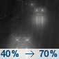 Temperature: 37°F Wind Speed: 7 mph Wind Direction: S Forecast: Rain likely. Mostly cloudy, with a low around 37. Chance of precipitation is 70%. |
