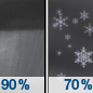 Temperature: 22°F Wind Speed: 10 to 16 mph Wind Direction: W Forecast: Rain showers before 1am, then a slight chance of snow showers. Mostly cloudy, with a low around 22. Chance of precipitation is 90%. New snow accumulation of less than half an inch possible. |