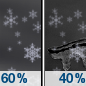 Temperature: 16°F Wind Speed: 15 to 20 mph Wind Direction: W Forecast: Rain likely before 11pm, then a chance of rain and snow between 11pm and 1am, then a chance of freezing rain between 1am and 2am, then a chance of snow showers. Cloudy. Low around 16, with temperatures rising to around 22 overnight. West wind 15 to 20 mph, with gusts as high as 40 mph. Chance of precipitation is 60%. New snow accumulation of less than half an inch possible. |