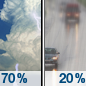 Temperature: 46°F Wind Speed: 5 to 10 mph Wind Direction: S Forecast: A chance of rain between midnight and 3am, then a chance of showers and thunderstorms. Cloudy. Low around 46, with temperatures rising to around 52 overnight. South wind 5 to 10 mph, with gusts as high as 25 mph. Chance of precipitation is 40%. New rainfall amounts less than a tenth of an inch possible. |