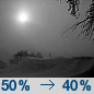 Temperature: 32°F Wind Speed: 14 to 23 mph Wind Direction: W Forecast: A chance of snow. Mostly cloudy, with a high near 32. Chance of precipitation is 40%. |
