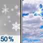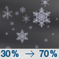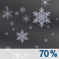 Temperature: 15°F Wind Speed: 6 mph Wind Direction: NW Forecast: Snow likely. Cloudy, with a low around 15. Chance of precipitation is 70%. |