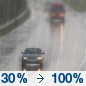 Temperature: 29°F Wind Speed: 8 to 13 mph Wind Direction: W Forecast: A slight chance of rain before 7pm. Mostly cloudy, with a low around 29. |