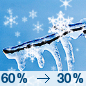 Temperature: 33°F Wind Speed: 5 mph Wind Direction: SSE Forecast: Snow likely and a slight chance of freezing rain before 3pm. Mostly cloudy. High near 33, with temperatures falling to around 30 in the afternoon. South southeast wind around 5 mph. Chance of precipitation is 60%. New snow accumulation of 1 to 2 inches possible. |