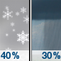 Temperature: 30°F Wind Speed: 5 to 10 mph Wind Direction: NW Forecast: A chance of snow showers before 7am. Mostly sunny, with a high near 30. Chance of precipitation is 30%. |