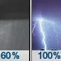 Temperature: 53°F Wind Speed: 14 to 23 mph Wind Direction: S Forecast: Rain showers between 9pm and 1am, then showers and thunderstorms. Some of the storms could produce heavy rain. Cloudy, with a low around 53. South wind 14 to 23 mph, with gusts as high as 29 mph. Chance of precipitation is 100%. New rainfall amounts between 1 and 2 inches possible. |