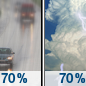 Temperature: 49°F Wind Speed: 6 to 12 mph Wind Direction: SW Forecast: Rain likely before 1pm, then a chance of showers and thunderstorms between 1pm and 4pm, then a chance of rain. Partly sunny. High near 49, with temperatures falling to around 46 in the afternoon. Southwest wind 6 to 12 mph, with gusts as high as 21 mph. Chance of precipitation is 70%. New rainfall amounts less than a tenth of an inch possible. |