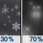 Temperature: 13°F Wind Speed: 5 to 10 mph Wind Direction: S Forecast: A slight chance of snow before midnight. Mostly cloudy, with a low around 13. South wind 5 to 10 mph. Chance of precipitation is 20%. |
