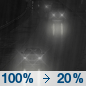 Temperature: 38°F Wind Speed: 8 mph Wind Direction: W Forecast: A chance of rain. Mostly cloudy, with a low around 38. Chance of precipitation is 30%. |