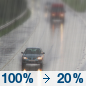 Temperature: 48°F Wind Speed: 14 to 17 mph Wind Direction: W Forecast: Rain before 1pm. Mostly sunny, with a high near 48. Chance of precipitation is 100%. |